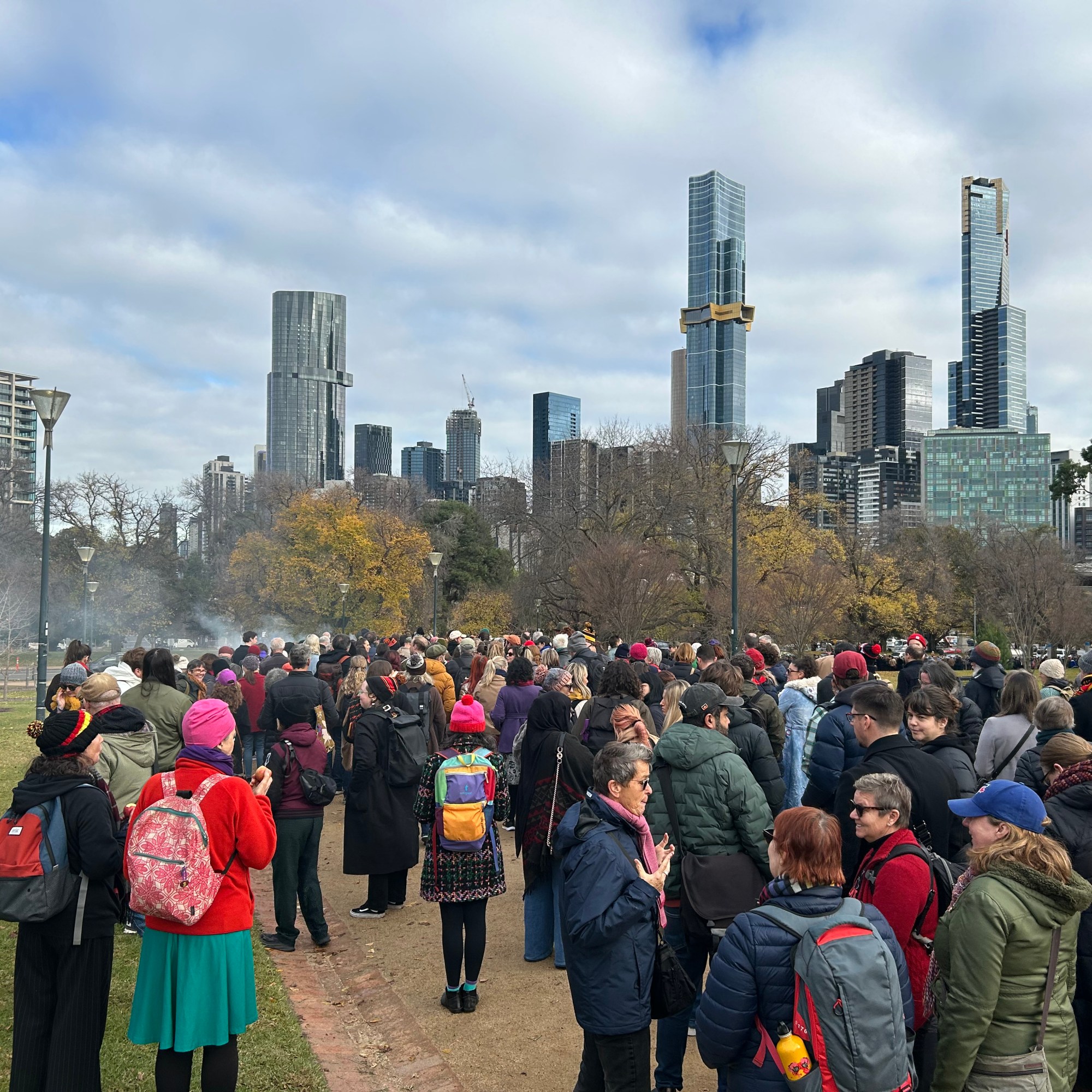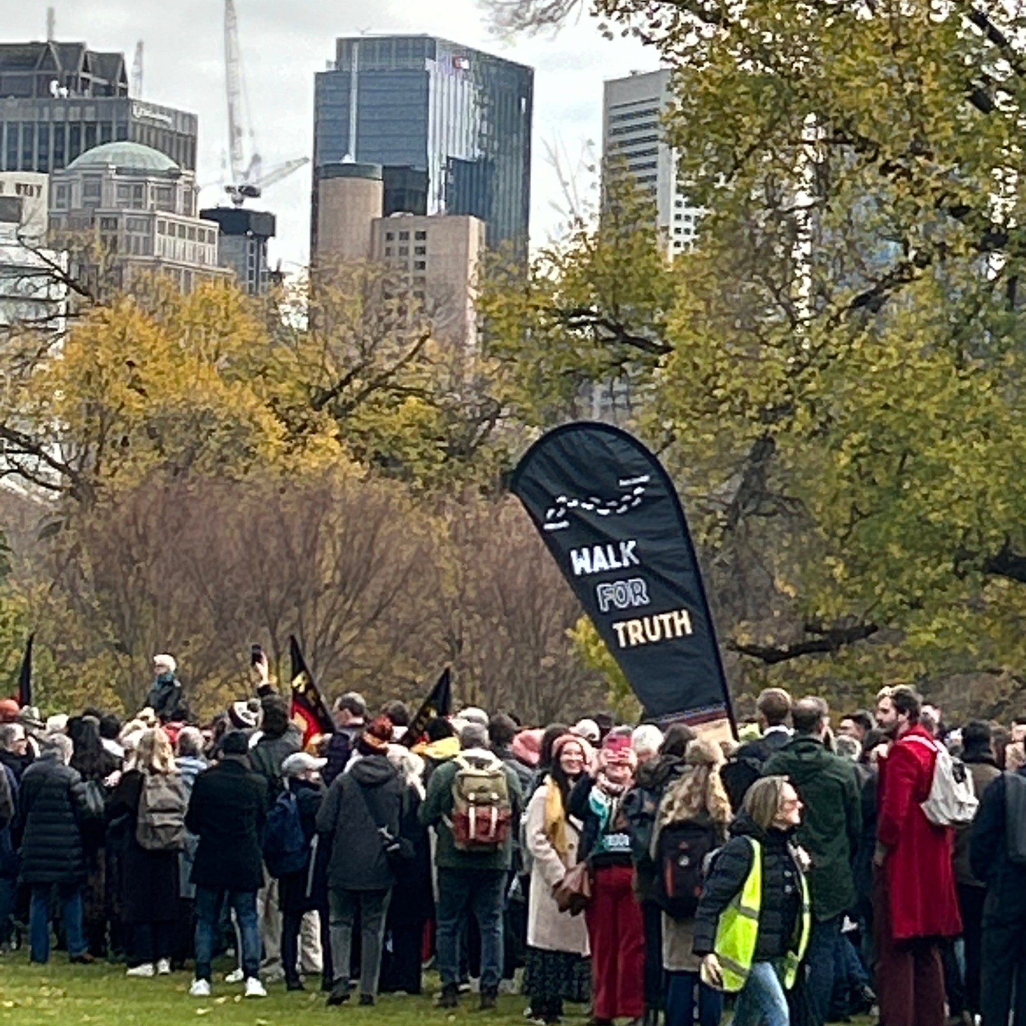 Walk For Truth on Wednesday 18 June 2025 from King’s Domain to Parliament House was the culmination of Yoorrook’s 500+km walk from Portland to Melbourne as both invitation and demonstration to uphold and support community truth-telling, understanding, and transformation. In my 20 years in Melbourne, it was the most moving gathering for belonging to this land —and what it means to be Melbournean, Victorian, and Australian.