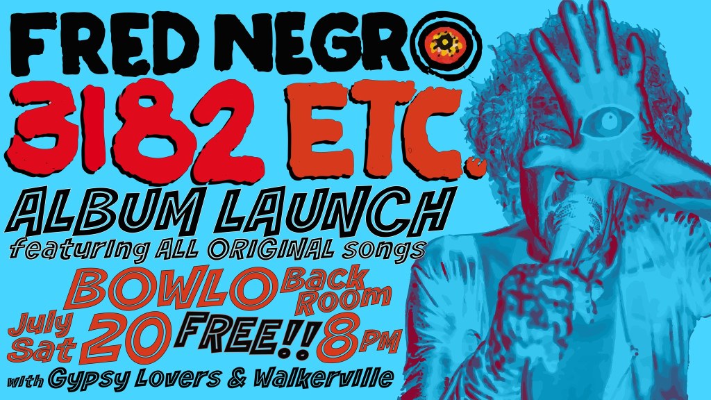 MUSIC. LIVE. FREE. Fred Negro 3182 Etc Album Launch, Saturday 20 July 2024 8pm, St Kilda Sports Club.