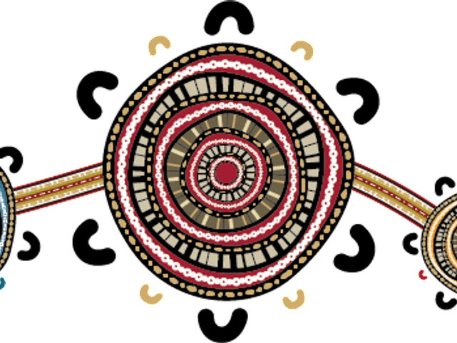“The circles represent meeting and community and they are connected through the songlines of culture and understanding.”