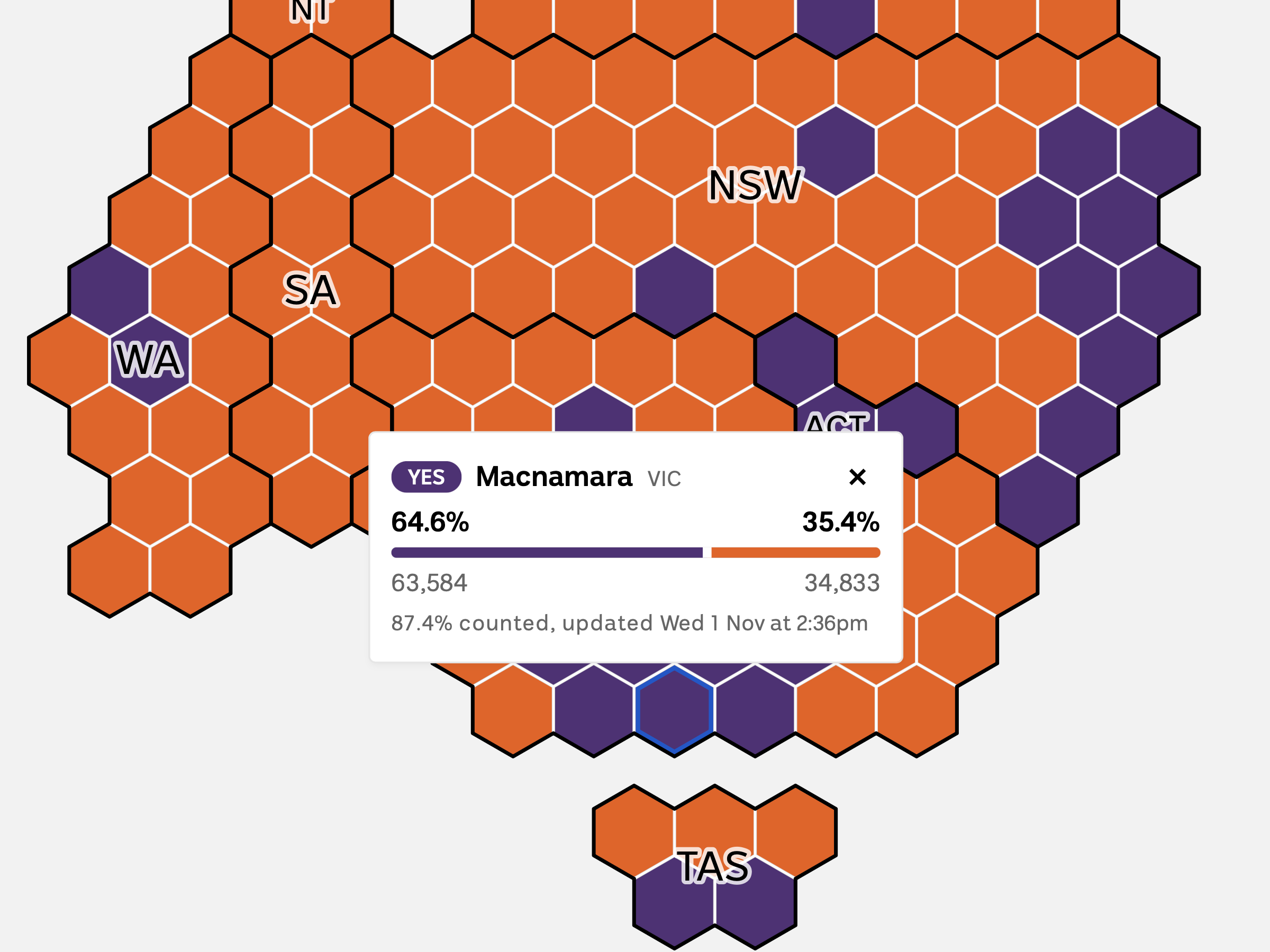 COMMUNITY | MILESTONE. Referendum Result for Macnamara, Victoria: 64.6% YES