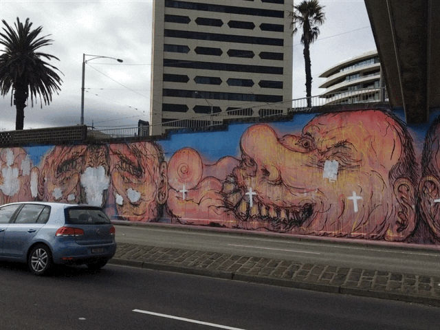 Or could the buffing of that vast mural on ‘the most hit wall in the entire City of Port Phillip‘ be deliberate and central to the artist project to incite debate? Could Michael and his homies be those same fools who were behind what could then be a very well-staged buffing?